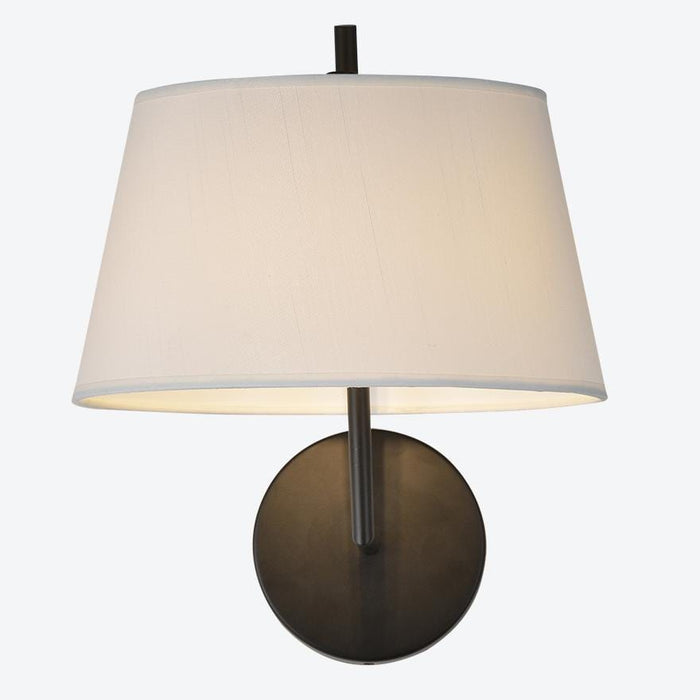 Finish: White linen shade with Matte black arm and plate or Antique Brass arm and plate