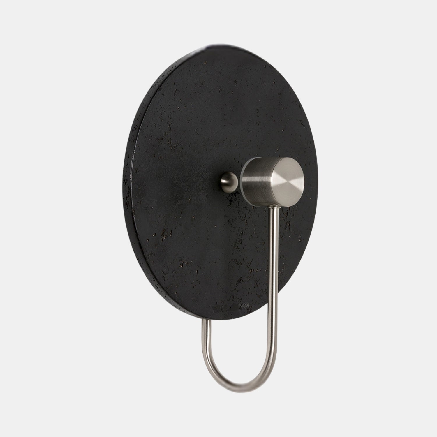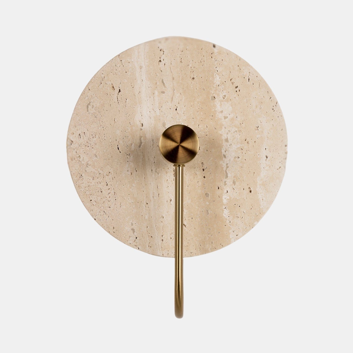A slender metal stem anchors the design, offering a striking contrast between organic stone and sleek metalwork. Choose from two elevated finishes: Natural Travertine paired with Brass for warm, earthy sophistication, or Black Travertine paired with Nickel for a moodier, modern expression.