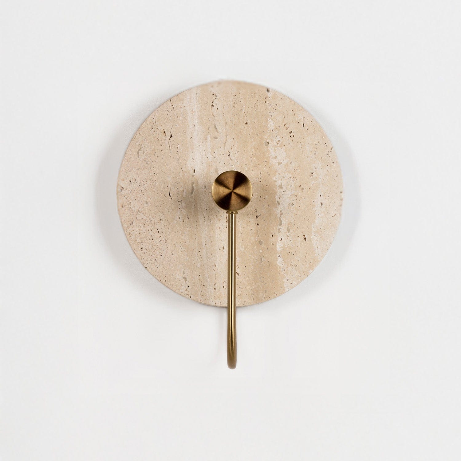 A slender metal stem anchors the design, offering a striking contrast between organic stone and sleek metalwork. Choose from two elevated finishes: Natural Travertine paired with Brass for warm, earthy sophistication, or Black Travertine paired with Nickel for a moodier, modern expression.